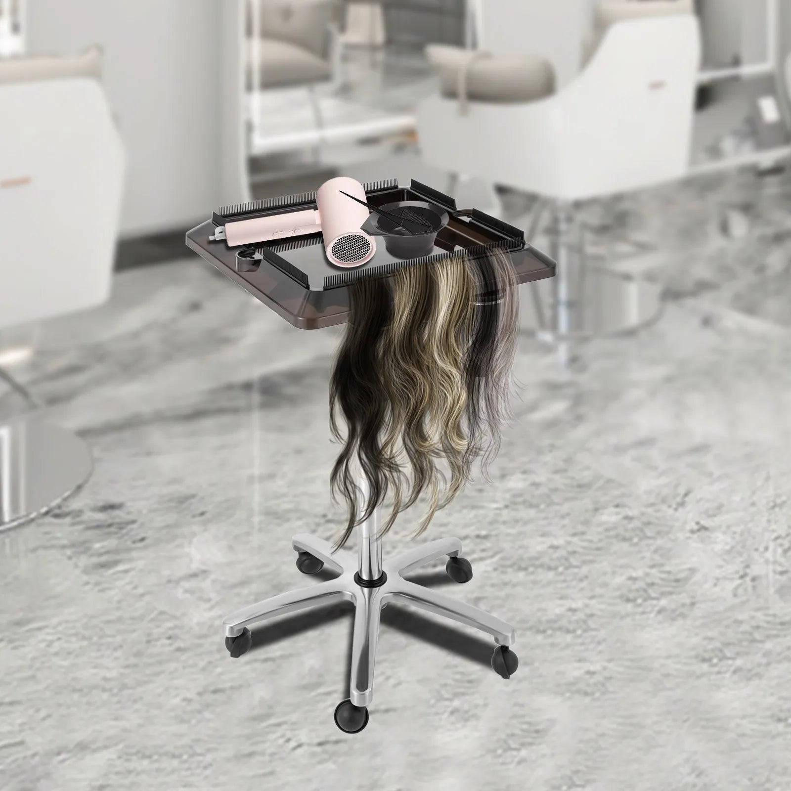Adjustable Rolling Salon Trolley Tray Cart with Heat-Resistant Storage Buckets | Mobile Hairdressing & Beauty Organizer