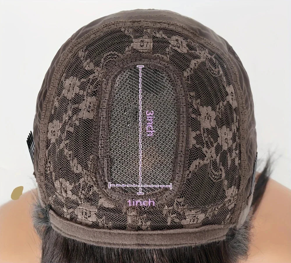 - Wig Type: Glueless 3x1 middle part lace wig with bangs.