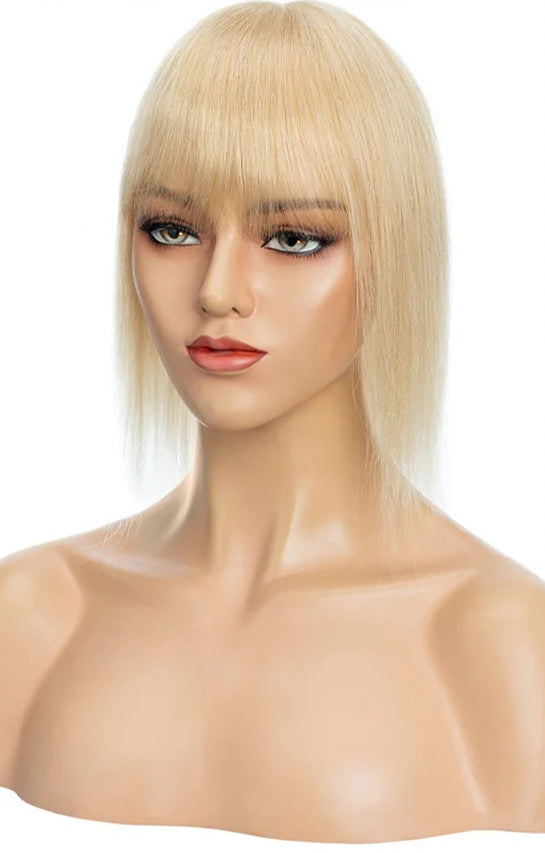 Transform your look with our Human Hair Topper with Bangs. Say goodbye to bad hair days and achieve instant volume and length. Order yours now and enjoy a stunning, natural hairstyle every day!