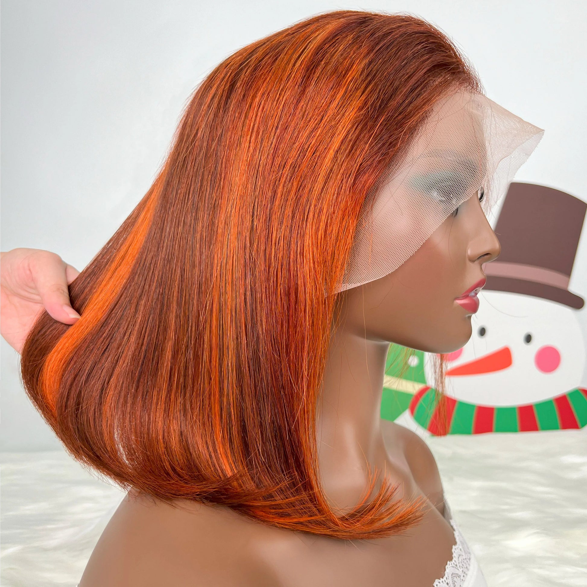 Short Bob Lace Front Wig – 100% Human Hair, 13x4 Transparent Lace, 180% Density